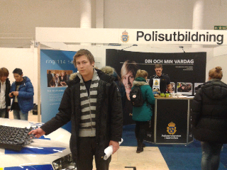Jag och Tony besökte polisens monter, där fick man reda på hur man skulle göra för att utbilda sig till polis. Det finns många olika grenar inom polisyrket t.ex hundförare, insatsstyrka mm.